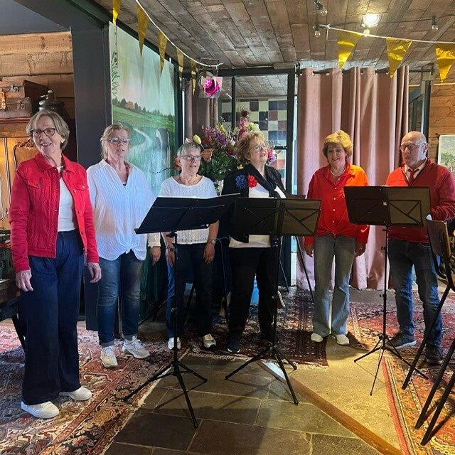 Het optreden was super gezellig, het weer zat ons ook mee en het publiek was enthousiast. En zo leuk de liedjes werden herkend, want we zagen er een aantal uit volle borst meezingen. Als extra toegift zongen wij nog het mooie nummer van “The Rose”, dat werd erg gewaardeerd, gezien het applaus.
